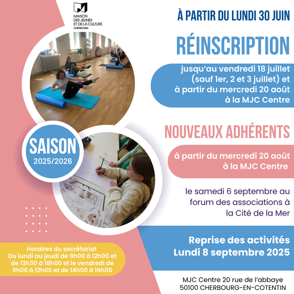 📍 MJC Centre – 20 rue de l’Abbaye – Cherbourg-en-Cotentin