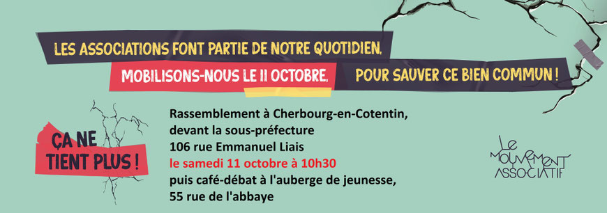 Participez à cette journée de mobilisation, organisée à travers toute la France par "le mouvement associatif" auquel adhère "MJC de France" pour sensibiliser à la dégradation de la situation de nombreuses associations, dans tous les secteurs d'activités, tant sur le plan financier que sur celui des ressources humaines.